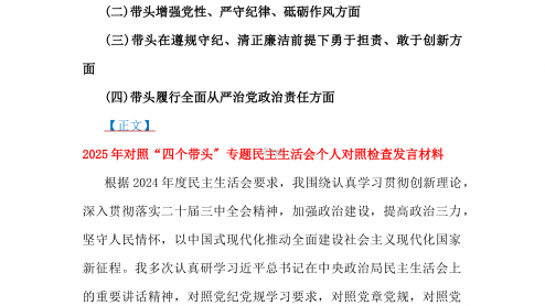 市检察院党组、市财政局领导班子2025年生活会对照“四个带头”方面检视发言材料2份文【含以违纪行为为典型案例剖析】