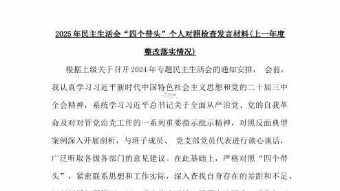 单位领导班子2025年聚焦“四个带头”生活会对照检查材料2篇文(含:典型案例剖析反思、落实意识形态责任制)