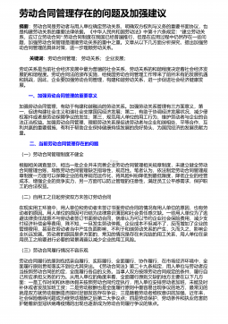 劳动合同管理存在的问题及加强建议