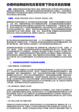 协调供给侧结构性改革背景下劳动关系的策略