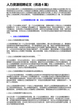 人力资源招聘论文(优选6篇)