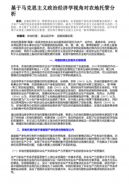 基于马克思主义政治经济学视角对农地托管分析