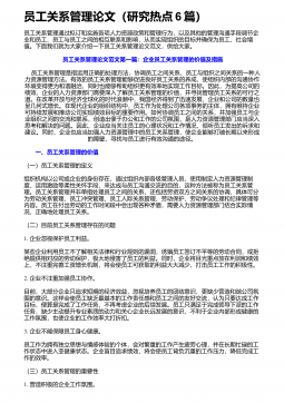 员工关系管理论文(研究热点6篇)
