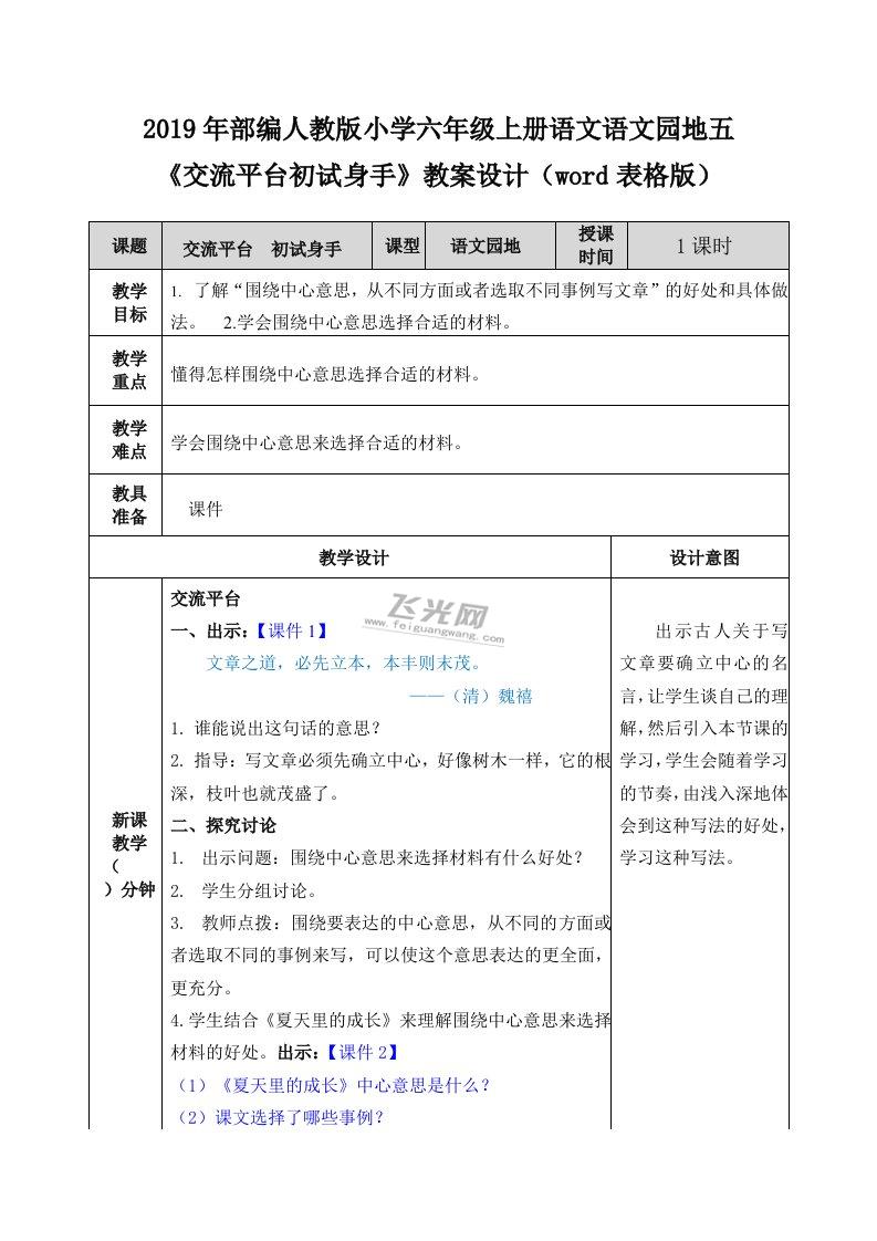 2019年部编人教版小学六年级上册语文园地五《交流平台初试身手》教案设计(word表格版)