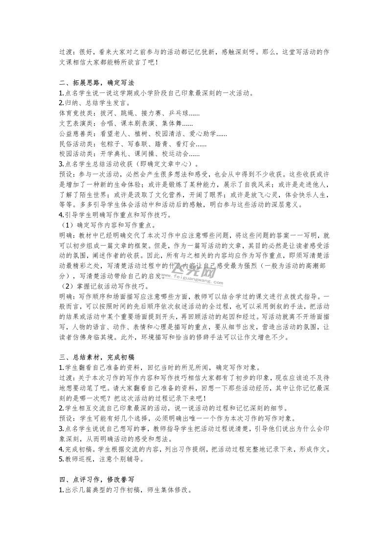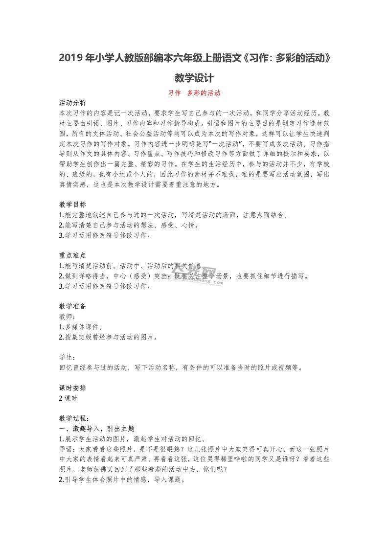 2019年小学人教版部编本六年级上册语文《习作:多彩的活动》教学设计