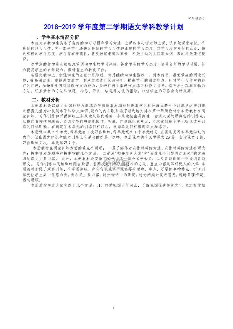 2019年苏教版小学五年级下册语文全册教案教学计划教学进度表教学期末工作总结.docx