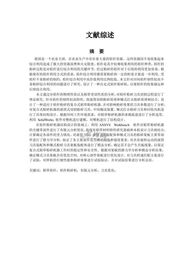 固定式香蕉秸秆粉碎机的设计