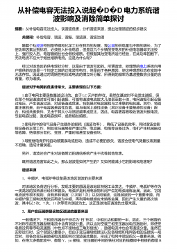 从补偿电容无法投入说起�DD�电力系统谐波影响及消除简单探讨摘要:从补偿电容无法投入,谈谐波危害,分析谐波来源,提出治理谐波的初步建议关键词:补偿电容、谐波、谐振、谐波源、谐波治理随着个私经济特别是特钢和化学工业在我市的发展,我公司的供电量也不断的增长,为了使功率因素达到标准,必须投入补偿电容,但是这几个乡镇的变电所的补偿电容器却无法投上,强行投入后,电容器熔丝也会很快熔断。但根据其他变电所运行经验,在此功率因数下,无功电流不应大于熔丝熔断电流。这是为什么呢?经过对该地区的供电现状分析,这是由于谐波引起的。所谓谐波,即理想的电力系统向用户提供的应该是一个恒定工频的正弦波形电压,但是由于各种原因...
