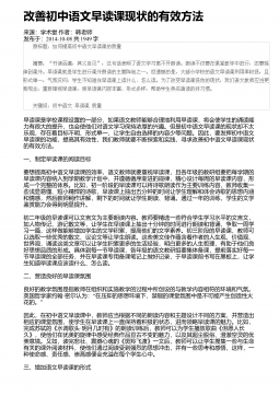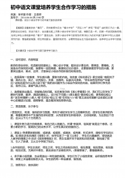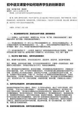 初中语文课堂中如何培养学生的创新意识来源:学术堂作者:周老师发布于:2015-11-08共1831字 一、建立新型的师生关系, 营造民主的学习氛围, 激发创新意识(一)在课堂上,允许学生插问.“疑是思之始,学之端.”有了疑,才能启动创造的闸门,触发想象与思考;敢于质疑,才能发展创造思维能力。“”(二)学生敢对教材说不.学习《从甲骨文到缩微图书》时,有学生对标题提出异议:“本”“…………”文是按时间顺序介绍书籍演变的说明文从到的句式表明最早的书籍是甲骨文,并“”非书籍的雏形,所以,本标题不能准确说明书籍的演变过程。“”(三)学生敢对教师说不.人非圣贤,孰能无过?教师应鼓励学生指出自己的错...