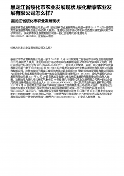 黑龙江省绥化市农业发展现状,绥化新泰农业发展有限公司怎么样?