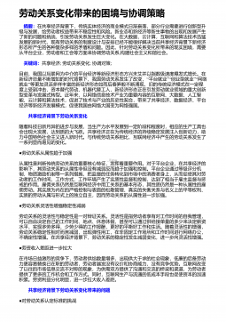 基于战略劳动关系与总薪酬管理构建薪酬管理体系自2006“”年党的十六届六中全会提出发展和谐劳动关系,2007“年党十七大报告指出规范和协”调劳动关系,到被誉为中国劳动关系元年的2008年,有一系列调整劳动关系的法律陆续实施,以及当年《国务院政府工作报告》对建设和谐劳动关系作出部署,再到2011年8月在北京召开的全国构建和谐劳动关系表彰暨经验交流会。可以说构建和发展和谐劳动关系,是贯彻党中央关于构建社会主义和谐社会的重要举措,“”是一项紧迫而重要的政治任务。如今和谐劳动关系一词已经深入人心,更成为我们衡量一个区域内社会是否和谐、组织运行是否良好的重要指标。但是,随着全社会对和谐劳动关系的重视,以...