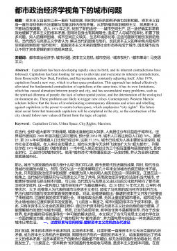 都市政治经济学视角下的城市问题摘要:资本主义自诞生以来一直在飞速发展,同时其内在的固有矛盾也如影相随。资本主义自身一直在寻找各种方法缓解与克服这种内在的矛盾。从罗斯福新政到福特主义、凯恩斯主义,不断地自我调整。进入1970年之后,——找到了新的途径城市空间生产,这一途径确实非常有效地缓解了资本主义的根本矛盾,但同时自身也有其局限性,造成了人与城市的异化,积累了很多问题。如人的精神困境、城市空间正义缺失、生态环境恶化等,这些问题很可能引发新的危机。当代西方马克思主义学者认为,解决当代的困境与危机、反抗资本主义的革命焦点是城市“”空间的控制权即城市权利。超越资本主义未来的理想社会形态将完成于城市,...