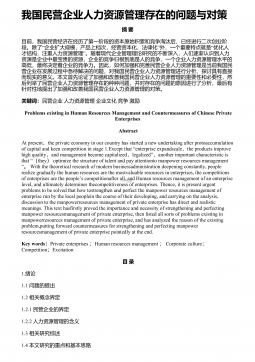 公司高科技人才培养中人力资源管理的不足与完善21世纪是知识经济竞争的时代,知识经济的竞争归根结底,是人才的竞争.在科技经济快速发展的现代,大到世界小到个人都在发生日新月异的变化.企业想要取得快速的发展,需要全方面的创新,这包括知识创新、技术创新和管理创新.而各种创新的对象和主体都与企业的高科技人才是密不可分的.自从20世纪六十年代以来,在着名经济学家西奥多.舒尔茨提出人力资本的理论获得了诺贝尔经济奖之后,在西方国家近半个世纪的补充、发展和完善之后,人力资源管理理论被越来越多的经济学家所认可,同时这些管理理论也被传到中国,一些具有发展战略眼界的企业家把这些管理制度应用到了他们的企业管理之中,提高...
