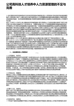 54-公司高科技人才培养中人力资源管理的不足与完善