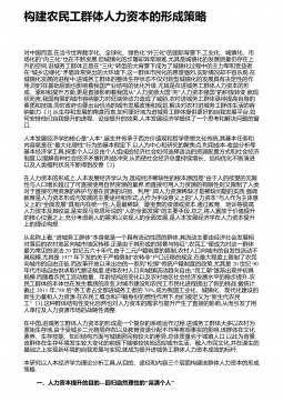 构建农民工群体人力资本的形成策略对中国而言,在当今世界数字化、全球化、绿色化"外三化"的国际背景下,工业化、城镇化、市场化的"内三化"也在不断发展,但城镇化的步履却异常艰难,尤其是城镇化的发展质量仍存在上升的空间.进城务工群体正是在"三化"转型的大背景下成为了城镇化过程中的主力军和受益者.在"城乡边缘化"矛盾异常突出的大环境下,这一群体市民化的愿望强烈,实际情况却不容乐观.在城镇化发展的进程中,进城务工群体的整体生存状态不仅对新型城镇化的发展具有决定性的作用,同时在基础层面也影响着我国产业结构的优化升级.尤其是在进城务工群体人力资本的形成、累积和提升方面,更是直接影响着我国从"人力资源大国"向...