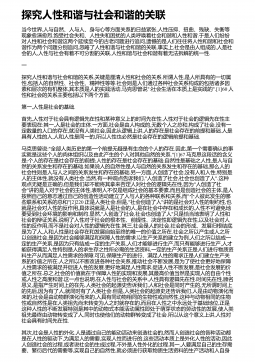 探究人性和谐与社会和谐的关联