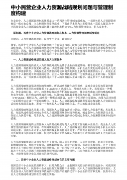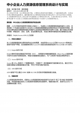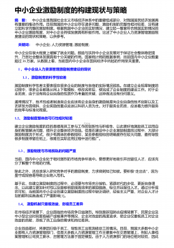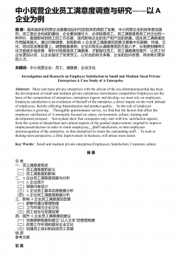――中小型民营企业激励机制探析以南京创倍希电子有限公司为例摘要:目前,在中国民营企业寿命较短的严峻形势下,各种体制亟需改革以适应社会的发展,南京创倍希电子有限公司的激励机制所存在的问题也日益凸显出来,如企业激励形式单一、绩效薪酬制度不科学、培训制度简单、缺乏系统的企业文化等。只有从观念、体制、激励形式等方面强化和完善企业激励机制,才能改善企业所面临的人才和发展困境,维持企业的向心力,提高企业的核心竞争力,实现中小型民营企业长久发展的目标。关键词:中小型民营企业;创倍希;激励机制;原因分析;对策Theanalysisofsmallandmedium-sizedprivateenterprisei...