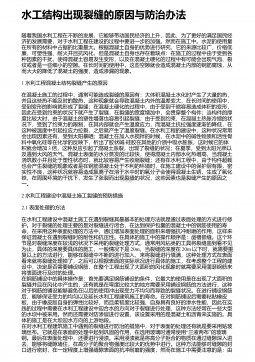 水利工程维修养护的优化措施水利工程建设主要在于施工阶段,由于其特殊性、复杂性,并很容易受到季节性影响,因此,水利工程质量往往会与这些特点密切相关.首先,水利工程的特殊性体现在其储水功能上,并发挥着挡水与泄洪的作用,这就需要水利工程建设中,要考虑到工程的抗腐蚀和承压性,以确保水利工程能够稳定而持久地运行.其次,水利工程设计复杂,主要体现在其筹建数量的不断增多,施工规模不断加大,在建设期间,就不可避免地受到自然因素和地质环境因素的影响.特别是水利工程往往建设在沿江、沿海、沿山等环境复杂的地段,因此而具有较高的技术要求.再次,水利工程建设的季节性很强.水利工程一般会选择少雨季节建设.比如,水利施工建...