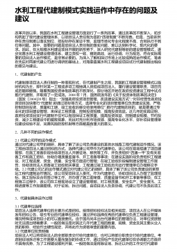水工建设管理主要问题与解决策略 摘 要: 随着我国经济水平的不断提升, 对于社会基础设施的投入越来越大, 其中水利工程是最核心的基础设施之一, 它对于我国工商农业的发展乃至人们的日常生活都有着莫大的关联。水利工程的建设质量关乎民生, 同时它的建设也需要大量资金、大量人力物力的投入, 因此,水利工程的建设受到的来自国家和社会的关注度非常之高。然而, 我国水利工程建设的管理过程中一直以来都存在一些问题, 一直没有得到根本的解决, 严重约束着当代水利工程的发展。因此, 要推动我国水利工程的进一步发展, 必须要结合当代社会发展对水利工程的要求, 结合先进的管理经验对其中的问题进行整改。 引言...