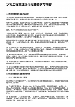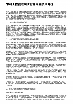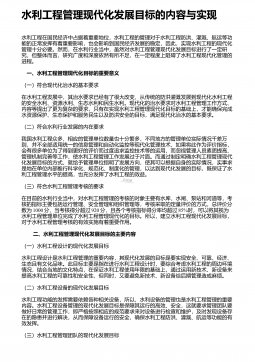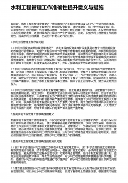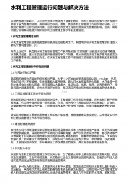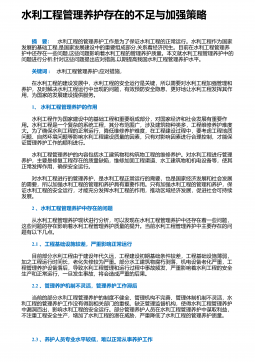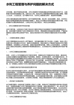 水利工程管理存在的不足与加强措施 摘 要:水利工程管理事关项目建设成效,影响重大,意义深远。项目各参建方应将项目管理的重视程度提至足够高度,将工程管理的现存问题予以透彻剖析,并采取针对性的有效对策,以全力做好项目管理,从而促使项目建设质量、安全、进度等得以满足建设需求。本文结合笔者多年水利工程管理经验,以水利工程建设的现状为切入点,细致剖析了水利工程管理的现存问题,并提出了针对性的解决对策。希望通过本文的分析与研究,能够为有效做好水利工程项目建设全过程、全方位动态管控,提高水利工程项目的建设质量提供帮助。 关键词:水利工程;施工管理;现存问题;解决对策; 1 、水利工程建设的现状水利...