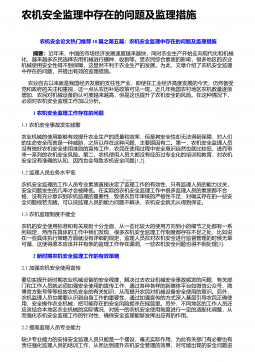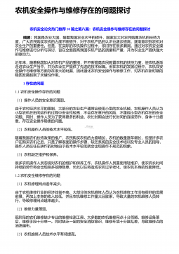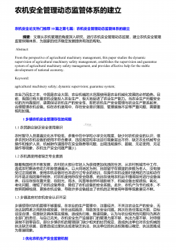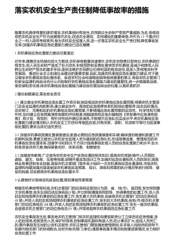 落实农机安全生产责任制降低事故率的措施随着农机具保有量的逐年增加,农机事故时有发生,农民群众生命财产受到严重威胁,为此,各级政府把农机安全生产作为发展现代农业,促进农业增效、农民增收的重要举措,并作为13个重点行业之一列入政府考核系列.身为农机安全监理人员,进一步落实农机安全生产责任制,降低事故发生率,加强农机事故应急处置能力建设已迫在眉睫.1农机事故应急处置能力建设任重道远近年来,随着农业机械化的大力推进,农机保有数量快速增长,农机安全隐患日渐突出,农机事故时有发生,给人民生命财产造成了巨大损失.积极预防和妥善处置突发农机事故,是减少和降低人民群众生命财产损失的基本手段,是依法维护农民群众切...