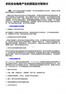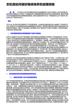 农机具如何做好维修保养和故障排除 摘 要:本文通过分析农机具维修保养及其故障排除不当的不良影响,结合实际情况对如何有效开展相关工作进行了详细的说明,希望能够帮助有关单位及农机具使用者,使其不断提升对农机具维修保养及故障排除的重视,改善当前维修养护状况,不断提高农业生产的效率,增加农业生产者的经济收入。 前言当今社会,科学技术的发展带动了农机具的研发,大批新型设备的诞生极大地便利了农民的生产生活,但是由于对设备维修保养及故障排除技术的缺乏,使得其不能有效对相关机械设备进行有效的养护及维修,日常工作效率降低,制约着农业生产者的生产经营水平的提升,新型农机具的价值也得不到有效发挥。 1 、...
