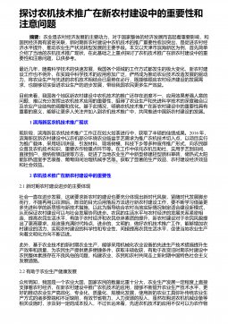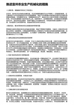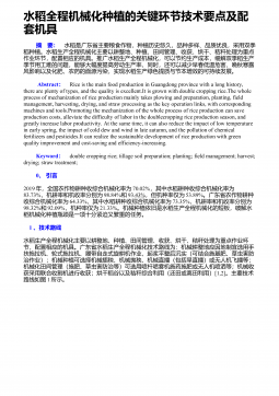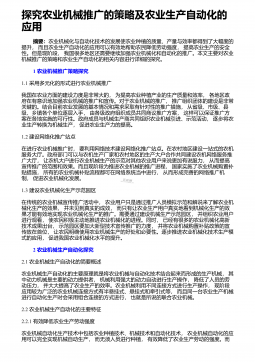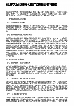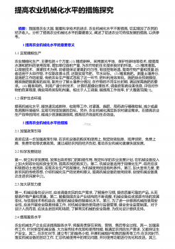 提高农业机械化水平的措施探究 摘要:我国是农业大国,随着科学技术的进步,农业机械化水平不断提高,切实增加了农民的经济收入。分析了提高农业机械化水平的重要意义,阐述了促进农业可持续发展的措施,以供参考。 1 提高农业机械化水平的重要意义1.1实现精细生产农业精细化生产,主要包括4个方面:(1)精准耕种。采用激光平地、保护性耕地等技术,能提高水源和肥料的使用效率,增加单位面积产量,为农作物的生长提供良好的环境。(2)精准灌溉。以微喷技术、滴灌技术为例,前者能保证灌溉的均匀性,有效控制地温,提高作物产量和质量;后者适用于大田作物,不仅能改善土质,还能实现节肥、节水目标。(3)精准施肥。测量土壤...