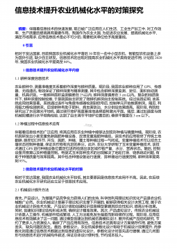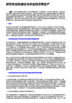 研究农业机械化与农业经济再生产 摘要:在农业发展的过程中,在过去通常采用人工种植方式,不仅生产效率低下,而且由于技术落后,导致农业生产的经济收益不高。通过农业机械化技术,能够有效提高农业发展的生产效率,并且更加科学有效的针对农作物进行管理,同时也可以更好的提升农作物产量,对于农业的发展具有非常关键的作用。从目前来看,通过农业机械化技术对于农业经济再生产具有非常重要的关系。通过对于农业经济再生产进行分析,明确农业机械化技术的重要作用,从而为农业机械化技术,在农业经济再生产的应用推广提供理论支持。 0 引言在农业生产的过程中,农业机械能够很好的取代人工作业,并且大大的提升了农业生产的效率。尤其是...