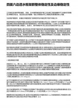 四面六边透水框架群整体稳定性及边缘稳定性江河湖泊及海岸带的堤防、岸滩、涉水建筑物的防护是江河治理工程的重要环节,对维持河势稳定,保障防洪安全、航运安全至关重要,一直以来都是水利工程建设和管理的核心问题.为实现护堤固岸、加强对冲刷的防护,各种防护技术被应用于防护冲刷之中.目前传统的抗冲型防护措施,会造成水流对防护层的集中冲击,在一定条件下,会引发整个防护工程的溃败,例如较常用的抛石防护措施就存在5种不同的失稳机制[1-5];另外,从中长期来看实体型防护措施存在着工程量大、投资大、需不断维护补充以及生态性缺乏等不足之处.目前,透水型防护措施以透水性和生态性等方面的优势,越来越得到重视.四面六边透水...