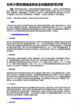 当前高校网络的安全状况和加强措施随着科技的不断进步,计算机网络的使用也变得越来越广泛,就高校而言,维持其日常运转的主要设备就是计算机。然而,当前在高校计算机网络的安全方面,还存在一系列严重的问题,因此,我们有必要对高校计算机网络的安全管理进行研究。1计算机网络安全的内涵所谓的计算机网络安全主要是指计算机网络信息的安全,即保证网络系统中的数据处于安全状态,防止其受到有意或者无意的诸如更改、泄露以及破坏等攻击,而且不至于使网络瘫痪,最终使得系统能够正常运行,避免因网络损坏而带来的损失。其实计算机网络安全所涉及的方面很广,诸如网络信息的诸如真伪、可用与否、完整与否、可控与否以及保密与否都可以成为为保...