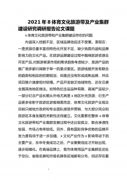 2021年8体育文化旅游带及产业集群建设研究调研报告论文课题