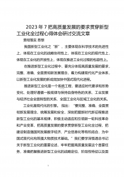 2023年7把高质量发展的要求贯穿新型工业化全过程心得体会研讨交流文章
