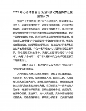 2023年心得体会发言(纪律)强化贯通协作汇聚监督合力