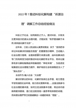 2022年7推动纠纷化解构建“诉源治理”调解工作总结经验做法