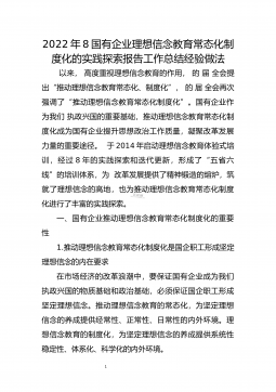 2022年8国有企业理想信念教育常态化制度化的实践探索报告工作总结经验做法