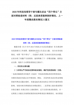 2025年一把手、领导班子成员民主生活会前一对一谈心谈话详细对话记录材料2份与2025年对照“四个带头”个人对照检查材料之今后努力方向、具体整改措施12条