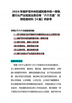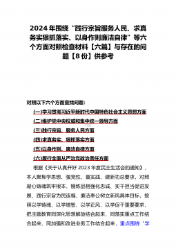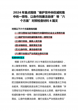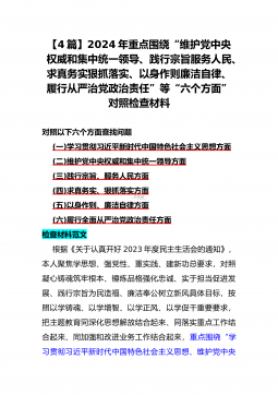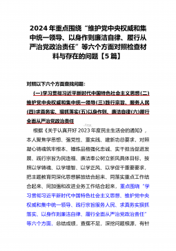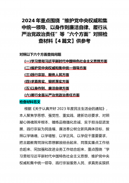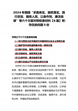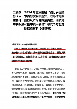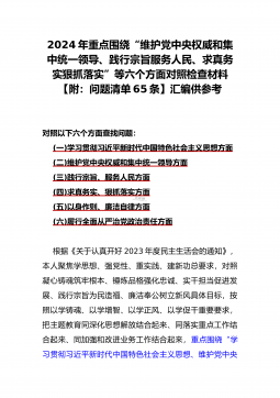 二篇文:2024年重点围绕“践行宗旨服务人民、求真务实狠抓落实、以身作则廉洁自律、履行从严治党政治责任、维护党中央权威和集中统一领导”等六个方面对照检查材料【供参考】
