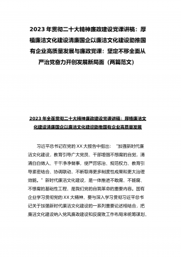 2023年贯彻二十大精神廉政建设党课讲稿:厚植廉洁文化建设清廉国企以廉洁文化建设助推国有企业高质量发展与廉政党课:坚定不移全面从严治党奋力开创发展新局面(两篇范文)