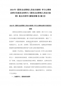 2024年《国有企业管理人员处分条例》学习心得体会研讨交流发言材料与《国有企业管理人员处分条例》重点内容学习解读讲稿【2篇文】