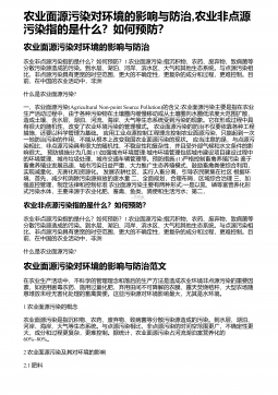 农业面源污染对环境的影响与防治,农业非点源污染指的是什么?如何预防?