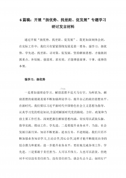 6篇稿:开展“扬优势、找差距、促发展”专题学习研讨发言材料