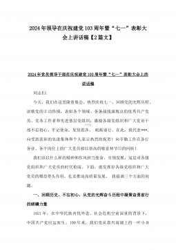 2024年领导在庆祝建党103周年暨“七一”表彰大会上讲话稿【2篇文】
