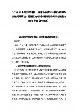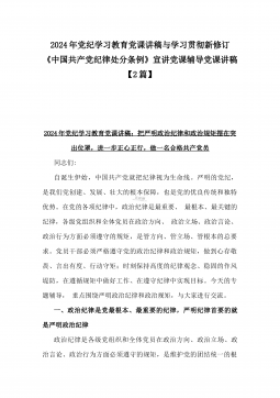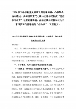 2024年下半年新党风廉政专题党课讲稿:心存敬畏,恪守底线,共铸清风正气之魂与支部书记讲授“党纪学习教育”专题党课讲稿:做推动铁的纪律转化为日常习惯和自觉遵循的“排头兵”(2篇例文)