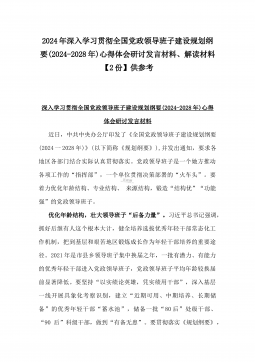 2024年深入学习贯彻全国党政领导班子建设规划纲要(2024-2028年)心得体会研讨发言材料、解读材料【2份】供参考
