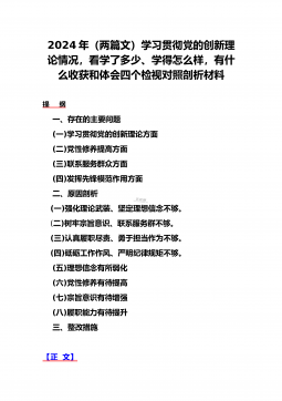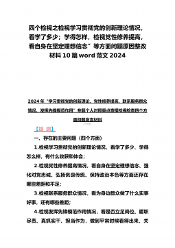 四个检视之检视学习贯彻党的创新理论情况,看学了多少;学得怎样,检视党性修养提高,看自身在坚定理想信念”等方面问题原因整改材料10篇word范文2024