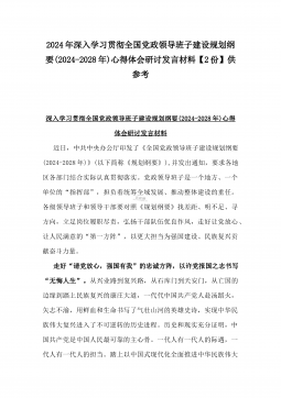 2024年深入学习贯彻全国党政领导班子建设规划纲要(2024-2028年)心得体会研讨发言材料【2份】供参考