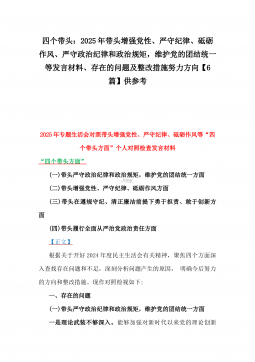 四个带头:2025年带头增强党性、严守纪律、砥砺作风、严守政治纪律和政治规矩,维护党的团结统一等发言材料、存在的问题及整改措施努力方向【6篇】供参考