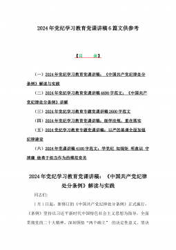 (2篇文)2024年基层党组织书记讲纪律党课《党纪学习教育党课》讲稿:学纪、知纪、明纪、守纪与恪守“六大纪律”筑牢思想根基2024年基层党组织书记讲纪律党课《党纪学习教育党课》讲稿:学纪、知纪、明纪、守纪同志们:根据党纪学习教育安排,为帮助党员干部深刻理解《中国共产党纪律处分条例》条款要求,真正做到学纪、知纪、明纪、守纪,搞清楚党的纪律规矩是什么,弄明白能干什么、不能干什么,把遵规守纪刻印在心,内化为言行准则,进一步强化纪律意识、加强自我约束、提高免疫能力,增强政治定力、纪律定力、道德定力、抵腐定力,始终做到忠诚干净担当,今天,我重点围绕“学纪、知纪、明纪、守纪”四个方面,给大家上一堂专题党课...