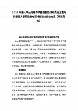 2023年重大事故隐患专项排查整治行动实施方案与开展重大事故隐患专项排查整治行动方案【两篇范文】