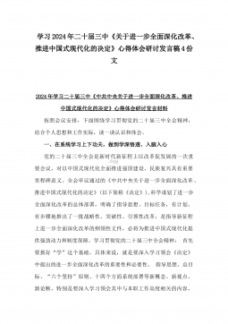 学习2024年二十届三中《关于进一步全面深化改革、推进中国式现代化的决定》心得体会研讨发言稿4份文